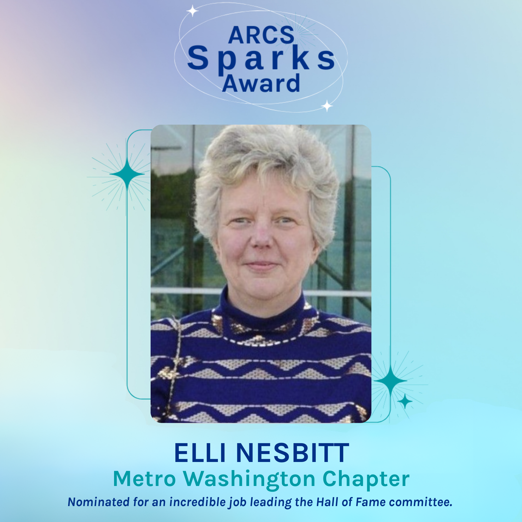 The ARCS Sparks Award is meant to honor ARCS members who exhibit small, everyday acts of kindness or displays of leadership or commitment to ARCS Foundation within the chapter or at the national level.