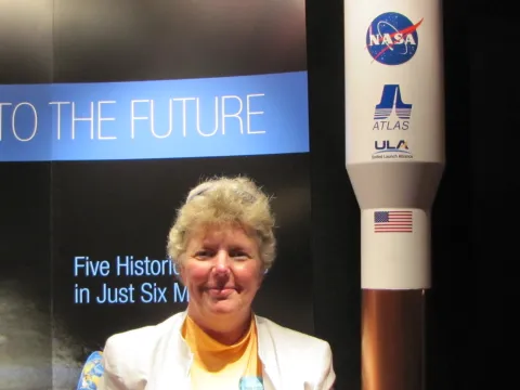 Mary Snitch (Atlanta Chapter) ensured that ARCS members had a front-row seat for the launch of the Juno spacecraft at 12:25pm EDT on August 5, 2011, at Launch Complex 41, Cape Canaveral Air Force Station, Florida. About 20-30 enthusiastic members from various chapters attended, including Atlanta, Metro Washington, Northern California, Orange County, and Oregon. Our trip also included time at Kennedy Space Center, as well as lectures and the opportunity to meet Scott Bolton, the Principal Investigator, and members of the launch team. Fast forward 5 years: Juno arrived at Jupiter on July 4, 2016. Juno will spend the next 20 months orbiting Jupiter 37 times and will then deorbit into Jupiter in February 2018. The goal of the mission is to understand Jupiter’s origin and evolution. As noted by NASA, “With its suite of science instruments, Juno will investigate the existence of a solid planetary core, map Jupiter's intense magnetic field, measure the amount of water and ammonia in the deep atmosphere, and observe the planet's auroras.” Janie Wilson (Atlanta Chapter) provided this video she took of the launch and the reaction of the excited crowd, saying “It was one of the thrills of a lifetime! It brought tears to my eyes.”