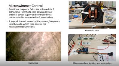 According to Wang, the micro-robotic systems are manipulated by electromagnetic coils—and the person performing the procedure. “All I really need to do is give them a power supply and control them through this digital-to-analog converter, that sends power to a microcontroller directly interfaced with the coils. I use a joystick to tell the microbot where to go and can move it in any direction,” he explains.